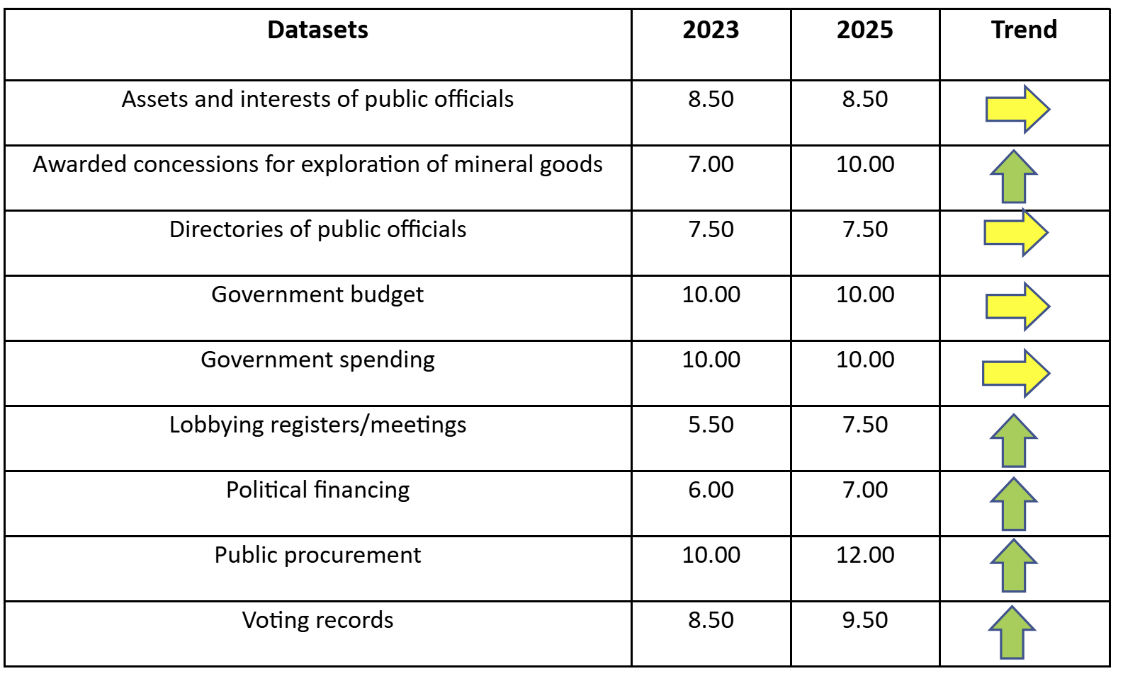 The most significant change has been the establishment of a new ministry—the Ministry of Energy, Mining and Mineral Resources. This ministry has also taken over responsibility for concessions related to mineral resources. On the ministry’s website, information about granted concessions can be found, and for the first time, all signed contracts for awarded concessions for the exploitation of mineral resources are publicly available. A new system for reporting the assets of public officials has also been introduced; however, the timely publication and regular updating of this data remain insufficiently defined. The same applies to the publication of data on appointed public officials. The Public Procurement Bureau has signed a cooperation agreement with the Central Registry, which should enable the automated publication of data on the beneficial owners of entities that have signed public procurement contracts in the Electronic Public Procurement System (EPPS).
